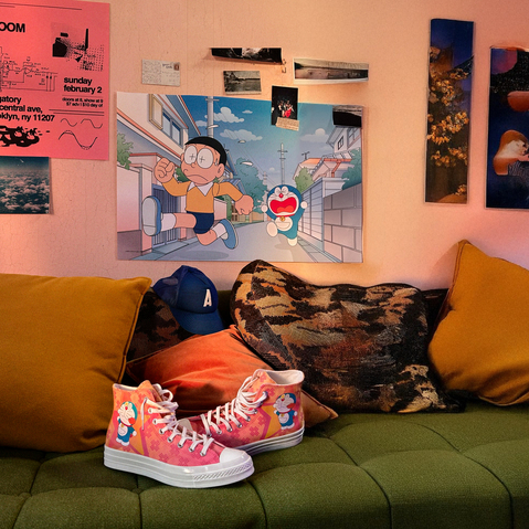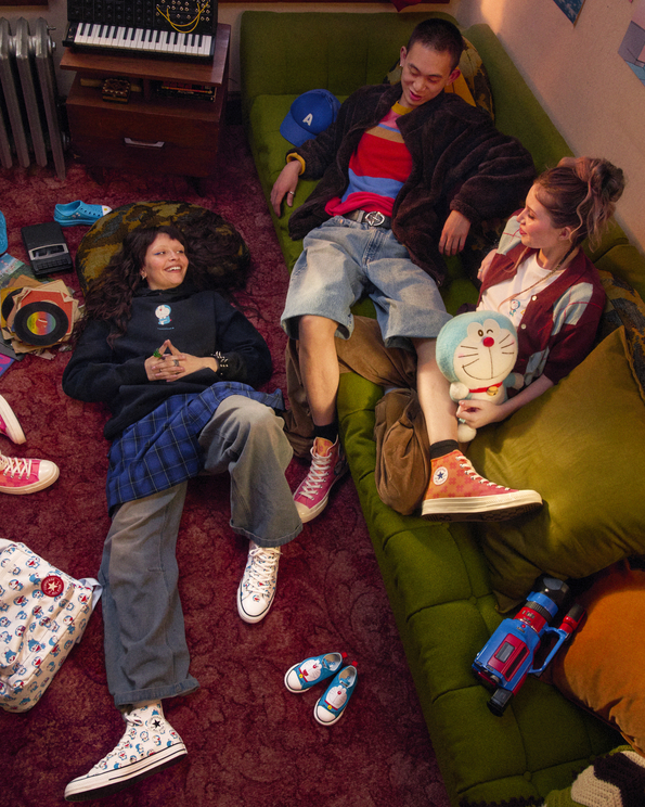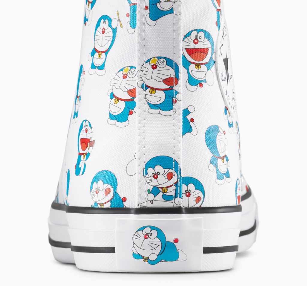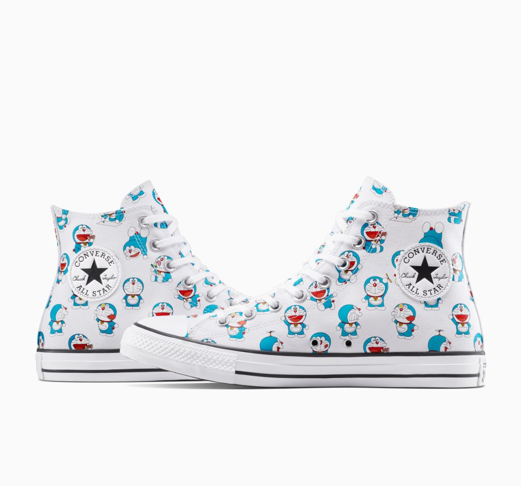 • Chuck 70s and Chuck Taylor All Stars reworked with bold prints, gadget graphics and expressive Doraemon details.