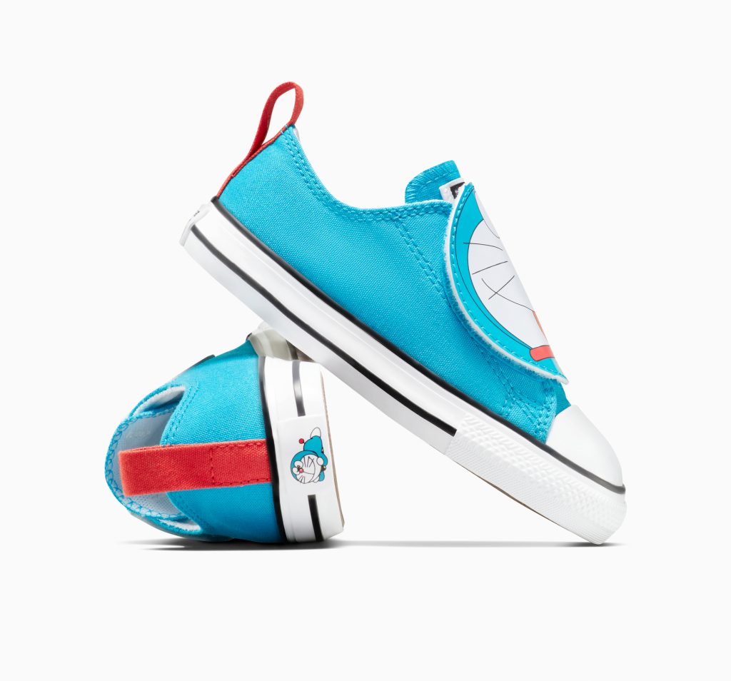 A dream collab for fans of Japan’s most loveable time-traveling robot cat. Converse has teamed up with Doraemon for a limited-edition drop of footwear, apparel and accessories celebrating the beloved character’s imaginative world.